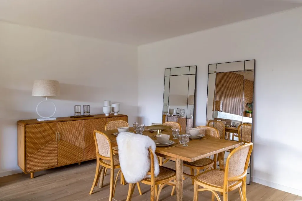Para ofrecer una sensación realista, la casa estará equipada con muebles de La Ibérica y Somos Qushon. Así se podrá visualizar la decoración y apreciar comodidades como la estufa a leña y losa radiante. También la barbacoa techada con parrillero y horno a leña, y el jardín con piscina que da al lago interior.