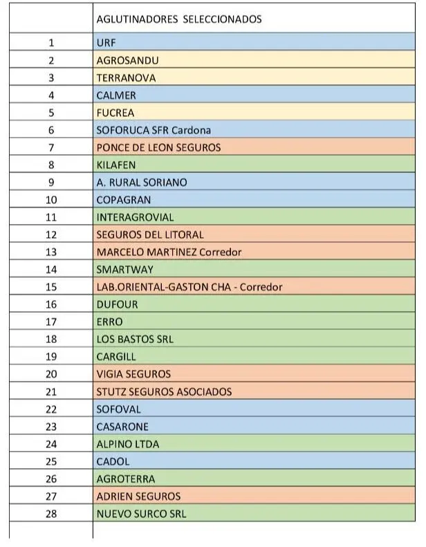 En el marco del proyecto piloto para la generación de información de rendimientos georreferenciados de cultivos de secano, con base en la actitud de promover la existencia de más seguros agrícolas y mejorar los existentes, fueron seleccionados 28 aglutinadores, los que firmarán un contrato con el Ministerio de Ganadería, Agricultura y Pesca (MGAP) que establece los derechos y obligaciones de cada parte.