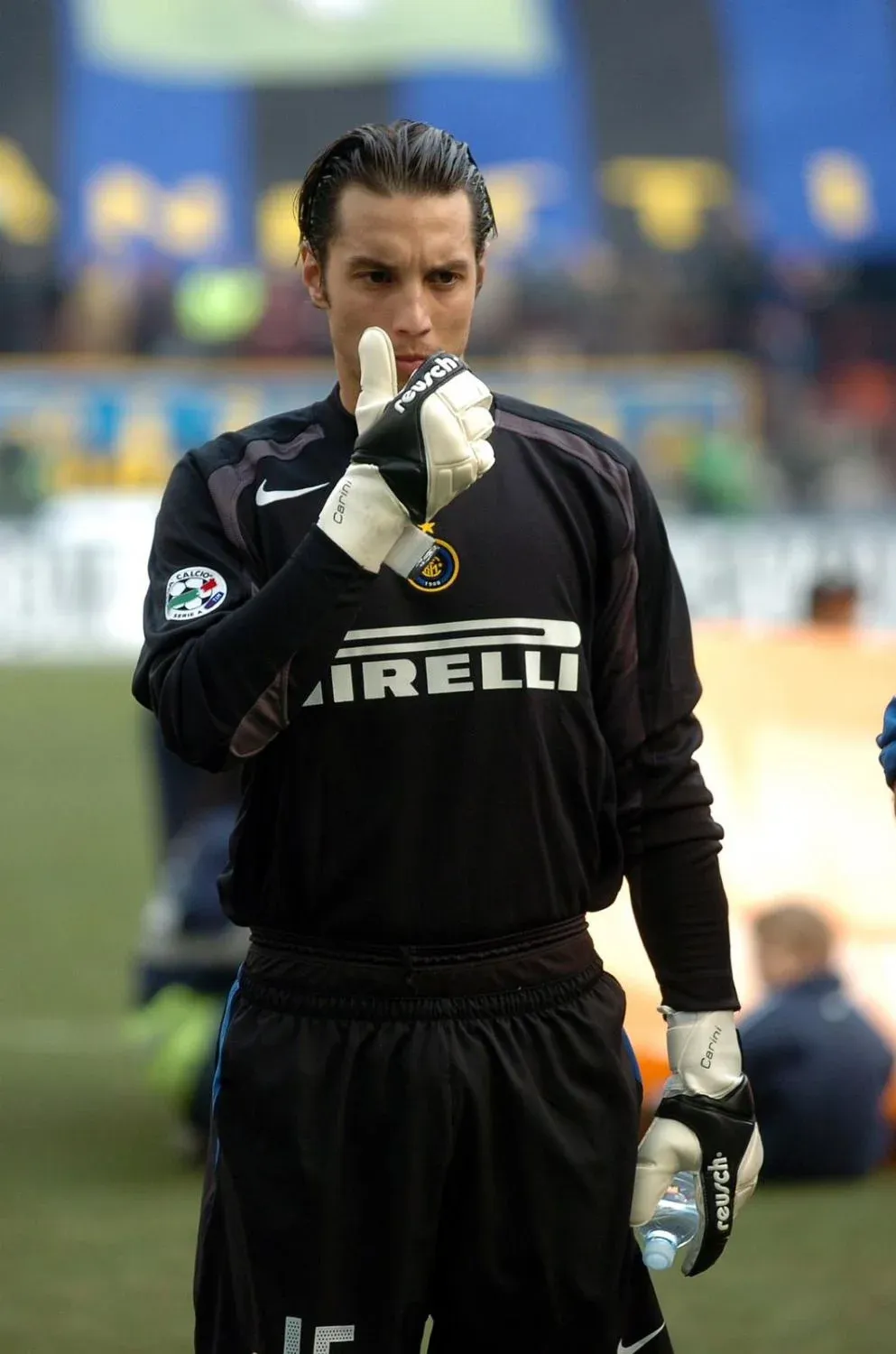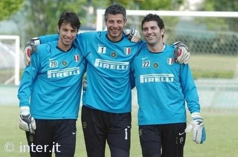 Fabián Carini con Francesco Toldo y Orlandini, los arqueros de Internazionale de Milán