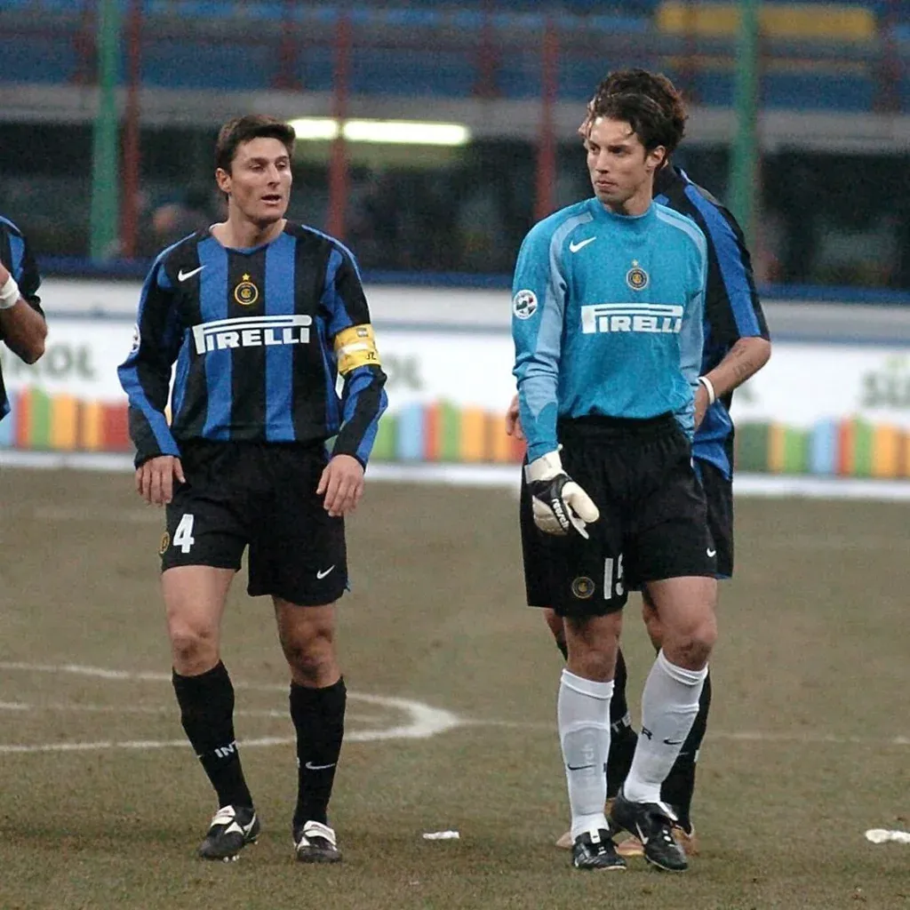 Javier Zanetti, un histórico de Internazionale de Milán, en un partido junto a Fabián Carini