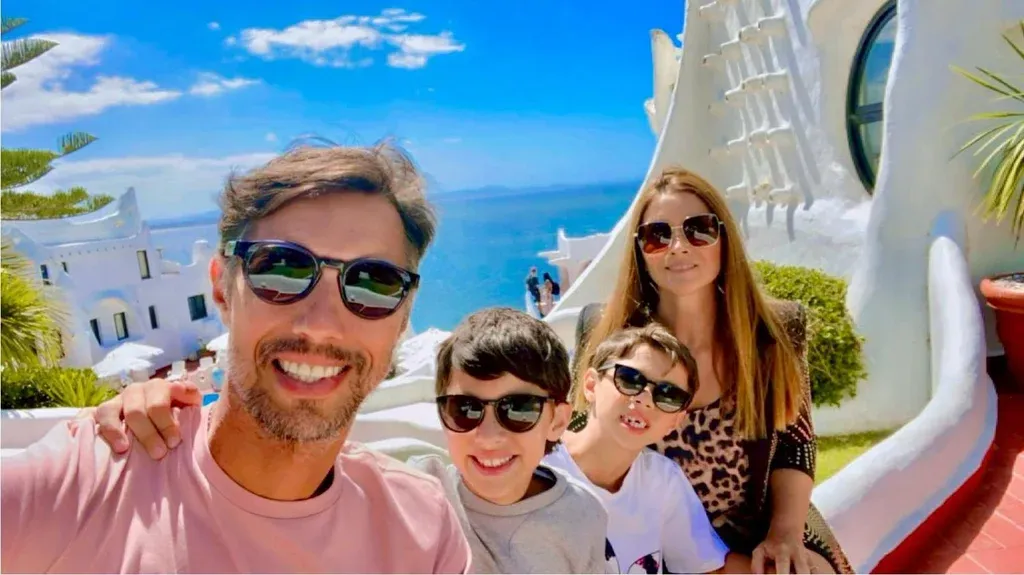 Fabián Carini con su esposa Virginia y sus hijos, Alessandro y Luca, en plenas vacaciones en el este