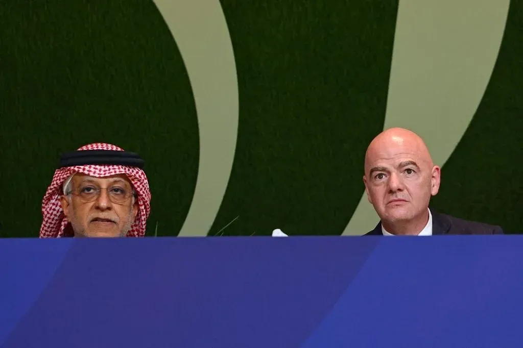 Salman Bin Ibrahim Al-Khalifa, presidente de la AFC, y Gianni Infantino, presidente de FIFA
