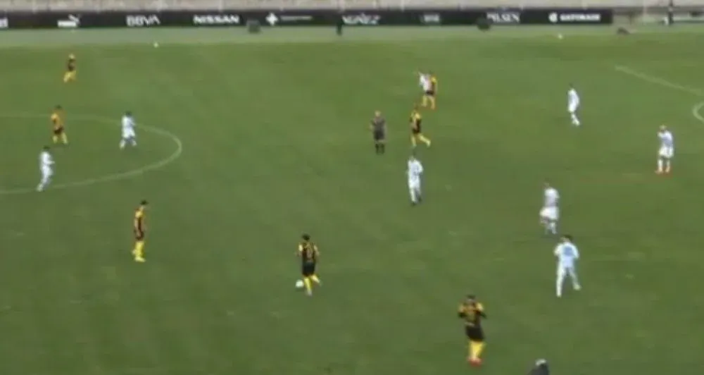 Por ejemplo, se lo vio al húngaro Vadócz incursionar bastante en ofensiva, algo que no es tan habitual. Mientras tanto, Facundo Pellistri trató de transformarse en el enlace, pero fue bien marcado y no desniveló.