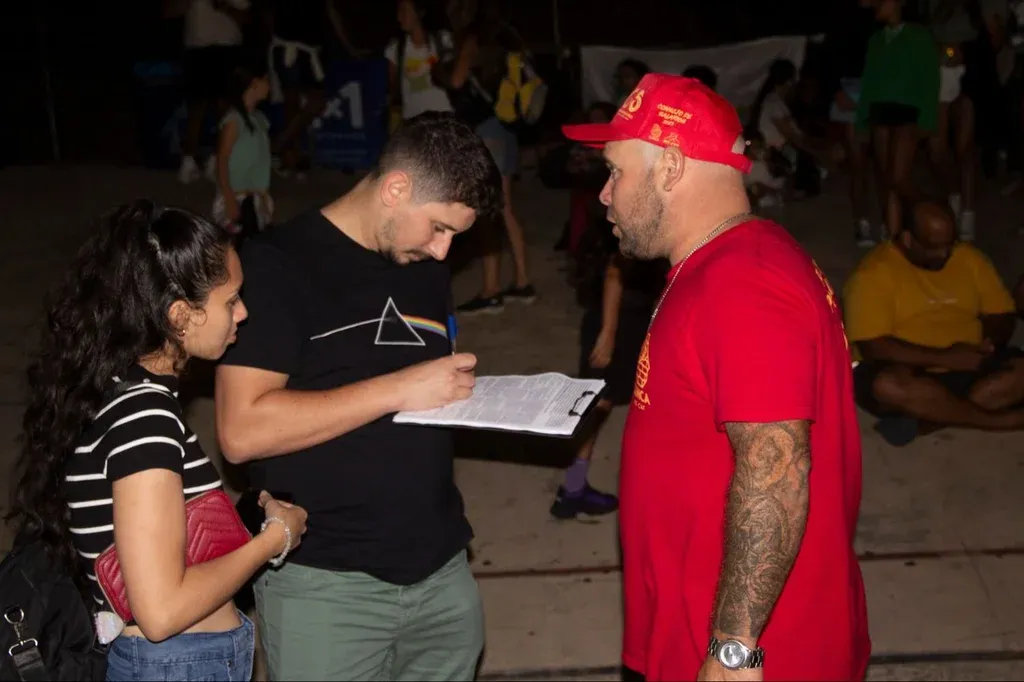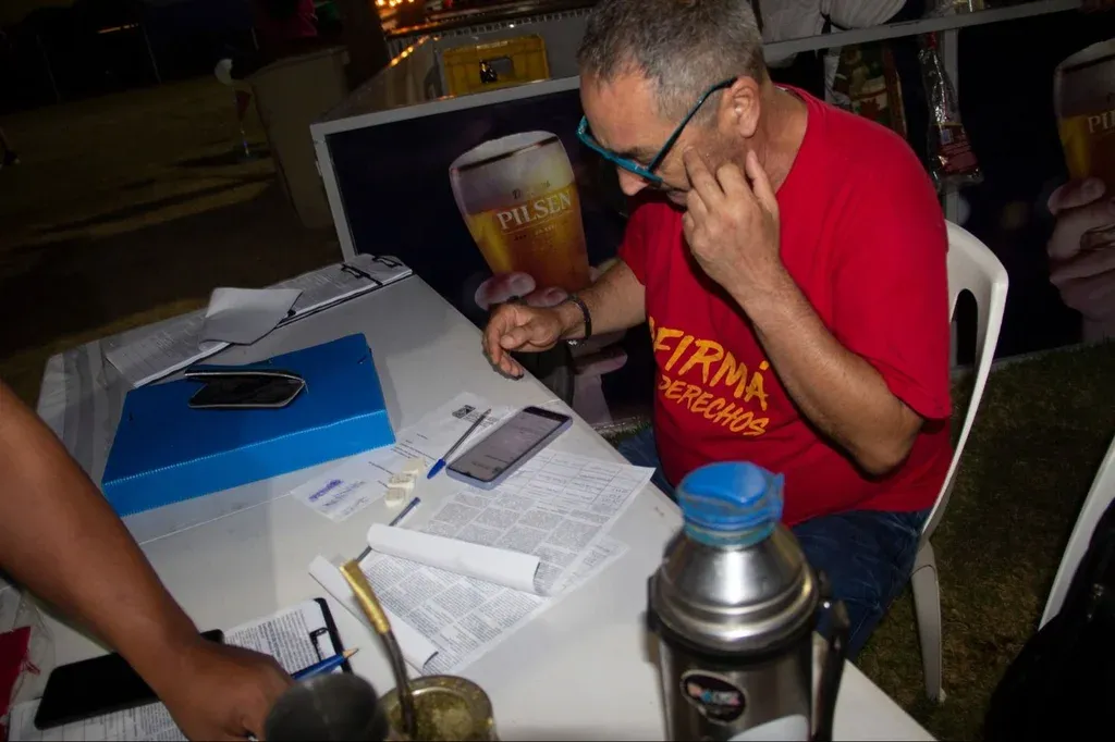 Dentro y fuera del Velódromo, los obreros se mimetizan entre el público y el Carnaval con sus mesas y papeletas para habilitar el plebiscito por seguridad social, que a grandes rasgos pretende eliminar las AFAP, igualar las jubilaciones mínimas al salario mínimo nacional y mantener en 60 años la edad de retiro. ,