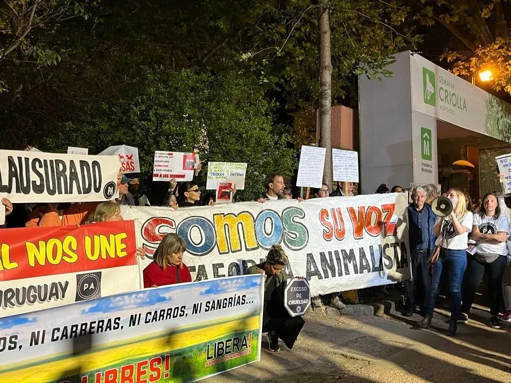 Karina Kokar, integrante de PA, explicó a El Observador que más allá de la relevancia que ha tenido manifestarse cada año durante el desarrollo de las criollas en Montevideo “decidimos dar un paso más”, aludiendo al inminente inicio de recolección de firmas tendientes a que se prohíban las jineteadas en la capital del país.