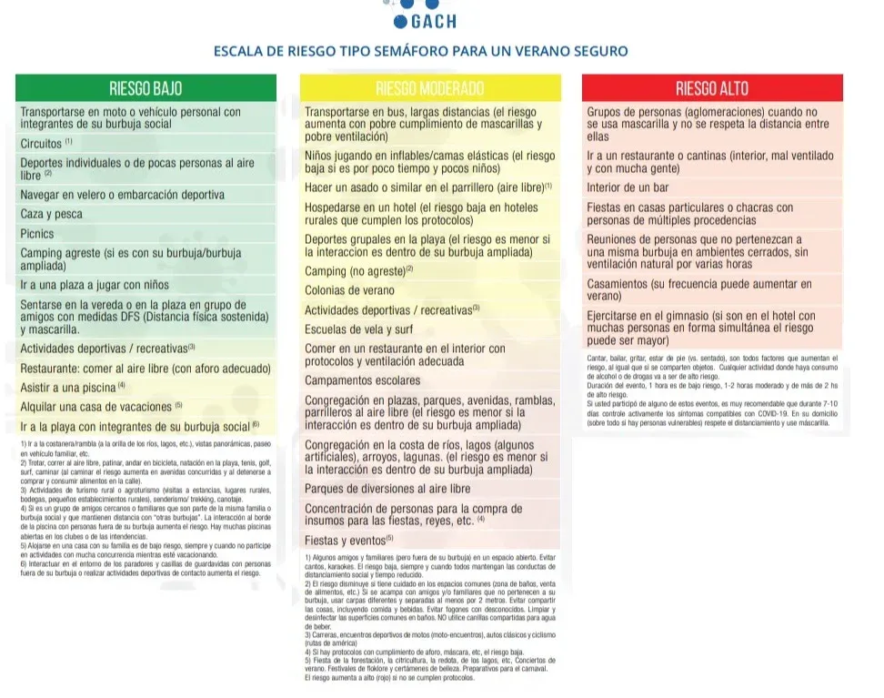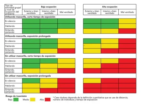 La guía plantea tres escenarios supuestos de bajo, medio o alto riesgo según ciertas condiciones.