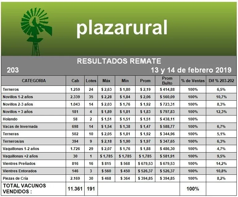 El 203° remate por pantalla de Plaza Rural hizo historia, ya que fue el primer remate del consorcio que colocó el 100% de su oferta.