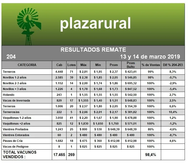 “Quedamos muy contentos”, concluyó el rematador en el marco de su balance.