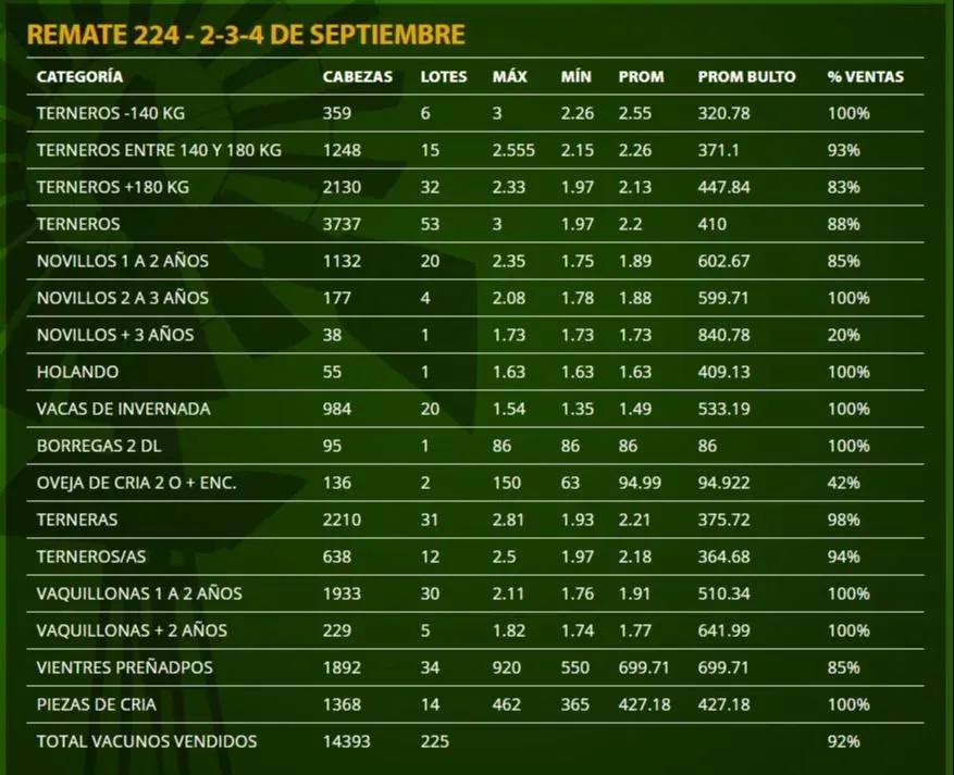 Con la colocación del 92% de un abultada oferta (cerca de 16 mil vacunos), dispersando 14.393 cabezas en 225 lotes, se desarrolló un nuevo remate de Plaza Rural, el Nº 224, durante el miércoles 2, jueves 3 y viernes 4 de setiembre.