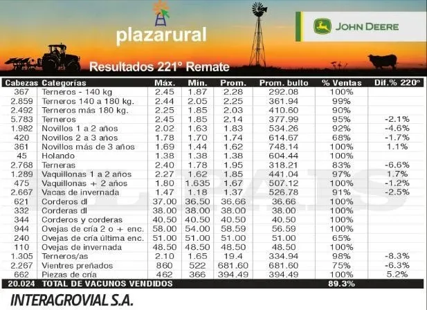 Plaza Rural colocó el 89,3% de su oferta inicial (20.024 cabezas), conformada por 22.855 vacunos y 2.613 ovinos.