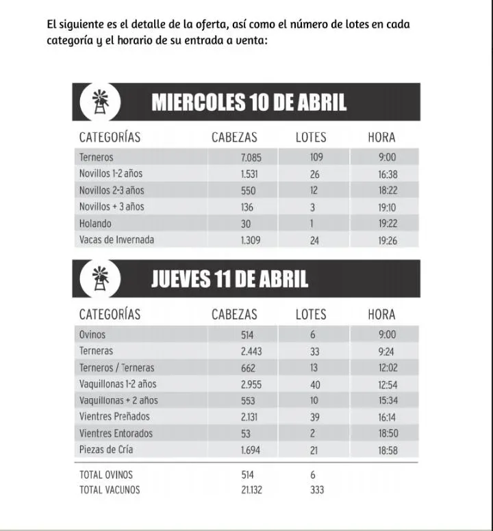 Respecto a la financiación, las ventas serán con 90 días libres (180 para el ganado preñado) y bajo la administración del Banco República (BROU). Además, los negocios que se realicen al contado tendrán un 2% de descuento.