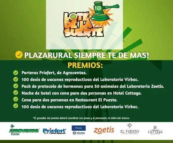 Como en su edición anterior, Plaza Rural contará con "lotes de la suerte" que cuando se rematen sonará una alarma previa al inicio de la venta del lote, que implicará un premio para el comprador.