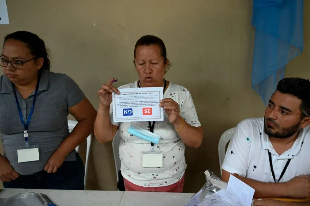 Tras conocer el resultado, cientos de habitantes se congregaron en el parque central del municipio para celebrar el rechazo. El proceso fue convocado por las autoridades del Gobierno local bajo la supervisión de una decena de organizaciones que fungieron como observadoras, incluidas cuatro salvadoreñas.