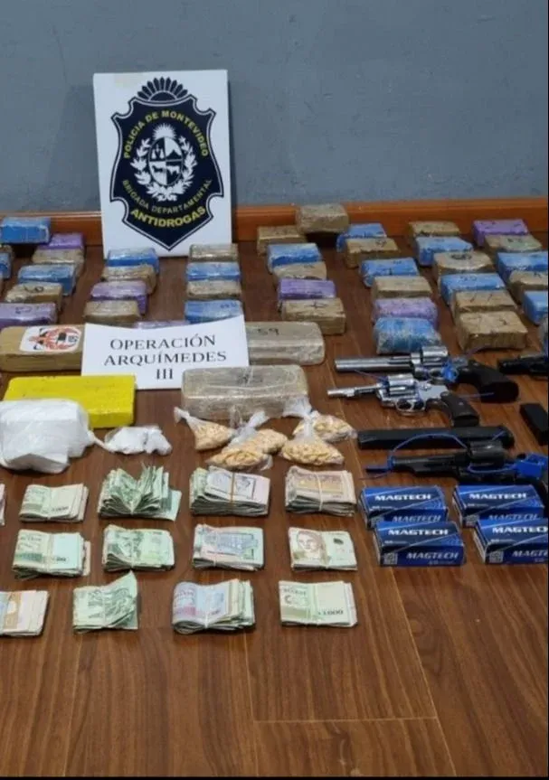 La Brigada Antidrogas de Montevideo realizó la tercera etapa de la Operación Arquímedes, hizo 12 allanamientos e incautó más de 32 kilos de droga –cocaína, pasta base, marihuana, éxtasis y LSD–, armas, dinero, autos y celulares. Además, fueron detenidas ocho personas, informaron fuentes policiales.