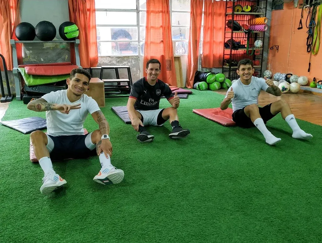 Gentileza @MartinRostan9 Lucas Torreira entrenando en Fray Bentos junto a sus hermanos Claudio y Brian. El caso entre los dos equipos parte por distintas interpretaciones del reglamento de la liga local sobre los conceptos de cupo y pase, y por la habilitación o no de dos futbolistas, Brahian Torreira, el hermano de Lucas, y su compañero Luis Leguizamo, de Salto.