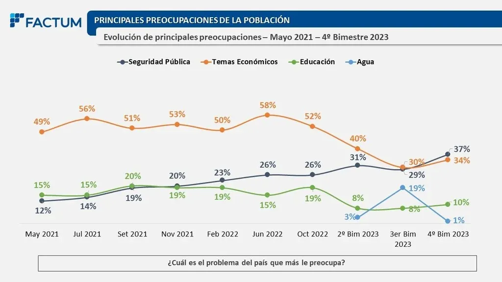 "La seguridad desde mayo de 2021 hasta ahora se triplicó sus menciones", señaló Bottinelli y dijo que esta preocupación ha tenido un "constante ascenso".