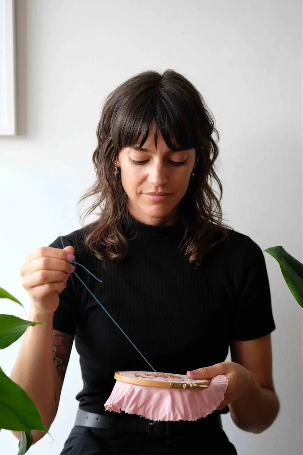 “Por muchos años hubo un uso de la técnica en pos del adoctrinamiento de una feminidad. Es muy poquito, es muy europeo, pero es lo que más heredamos. Eso me llevó a investigar. Parte de lo que a mí más me interesa del bordado es reflexionar sobre la técnica y sus analogías, porque lees a Rozsika Parker que es una historiadora feminista que escribe sobre específicamente esto dice 'ver la historia del bordado es ver la historia de la mujer'. Cuando vos vas hilando una técnica, te vas dando cuenta de la historia en sí misma”, sostiene.
