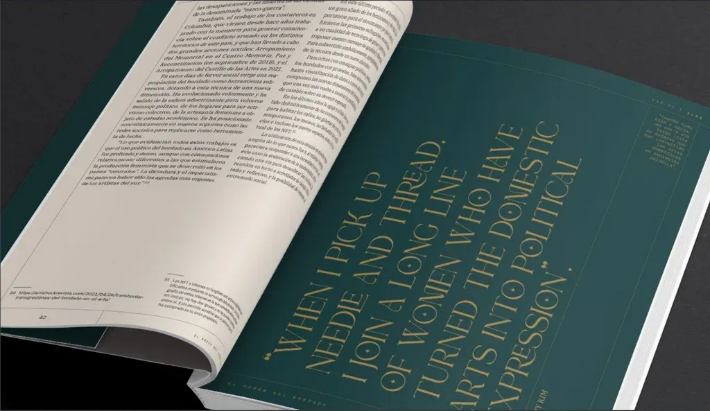 La autora del libro rescata el uso político y social de un hilo y una aguja. No solo como técnica que desafía los tiempos feroces y agitados en los que vivimos en la contemporaneidad ni como herramienta de expresión, sino como un espacio de diálogo interseccional como el que se establece en las mesas de bordado colectivo.