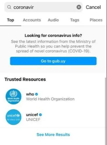 Tanto Instagram como Facebook añaden etiquetas con información de la OMS a publicaciones que hablan sobre las vacunas y la COVID-19. También se aplican tags a todas las publicaciones que mencionan esta temática para dirigir a las personas al centro de información.
