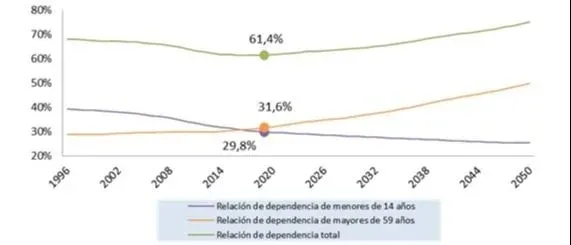 Relación de dependencia en Uruguay, 1996-2050