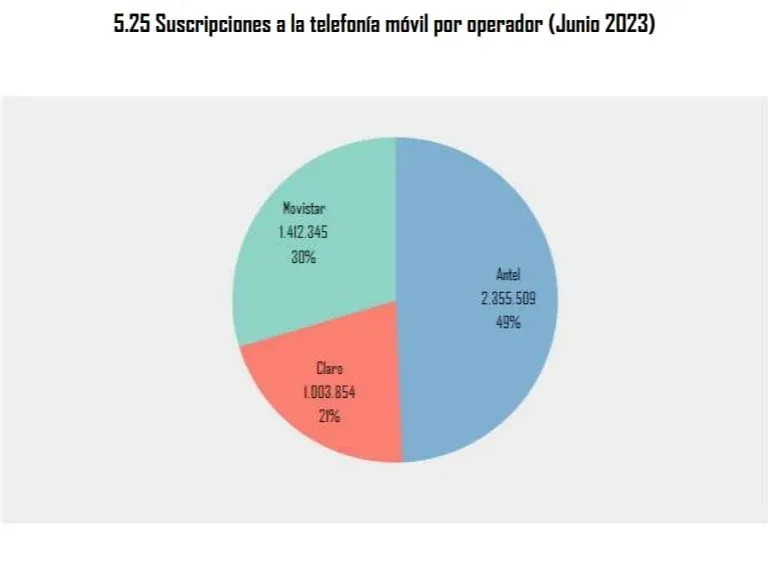 El último informe de mercado de telecomunicaciones de Uruguay, elaborado por la Ursec, dio cuenta que a junio de 2023 Antel tenía el 49% de participación de mercado, similar al cierre de 2022.