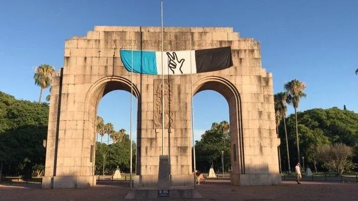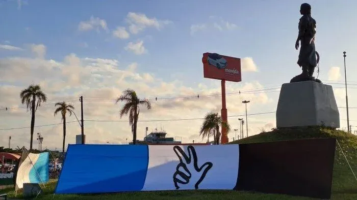 Dos grandes carriles acogen a los conductores que ingresan a la capital por la (ruta) BR-116, junto al Aeropuerto Internacional Salgado Filho. A los pies del (monumento al) Laçador, eran el punto para las fotos de los hinchas del Grêmio que pasaban.