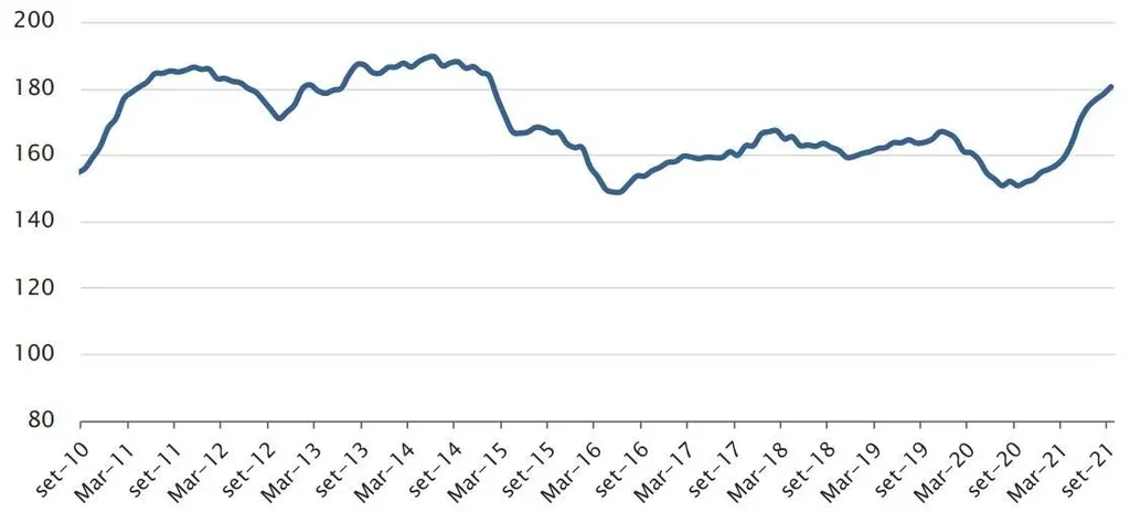 En tanto, el IPE para el total de los bienes de la economía, medido en dólares, se mantuvo estable (0,3%) respecto a agosto y si se lo compara con setiembre de 2020 el incremento fue de 12,1%.
