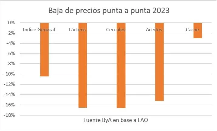 El precio promedio de los alimentos que mide la FAO cayó el año pasado 10,1% y eso ocurrió principalmente por una baja en el precio de los aceites y de la carne, que superó a las modestas subas que tuvieron los cereales (por una disparada exclusiva del arroz) y los lácteos, que bajaron durante buena parte del año pero repuntaron en el final.