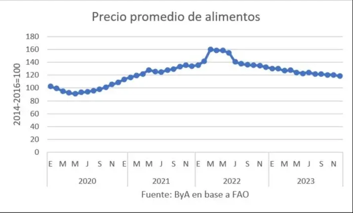 Blasina y Asociados El resultado fue la mayor baja anual de precios para los alimentos desde 2015 y esa fuerte caída de 2023, que ocurre por segundo año consecutivo, no muestra muchos signos de recuperación en un 2024 que promete generar una oferta de granos que supere a la demanda y haga engrosar las reservas mundiales, al menos en soja y maíz.