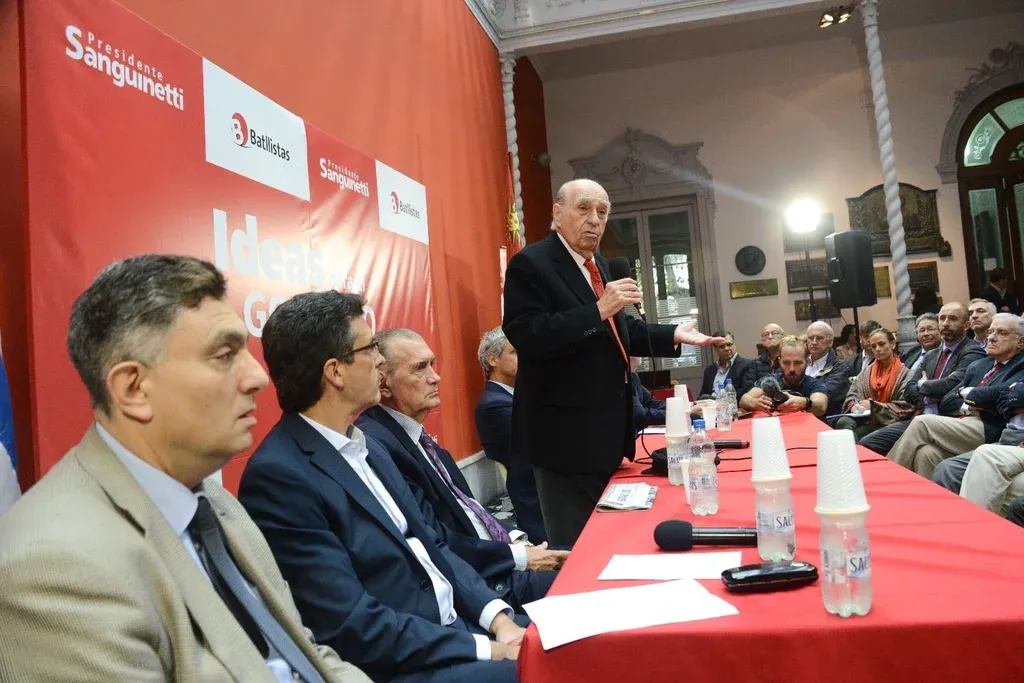 "El país está hipotecado, no está quebrado pero lo estará si el gobierno que viene no asume con responsabilidad la tarea”. Así comenzó Julio María Sanguinetti su discurso durante el cierre del ciclo “ideas para el 2020”, once encuentros en los que los técnicos de Batllistas delinearon el programa de gobierno que le presentarán a la ciudadanía y que será la base sobre la que buscarán construir una coalición para vencer al Frente Amplio.