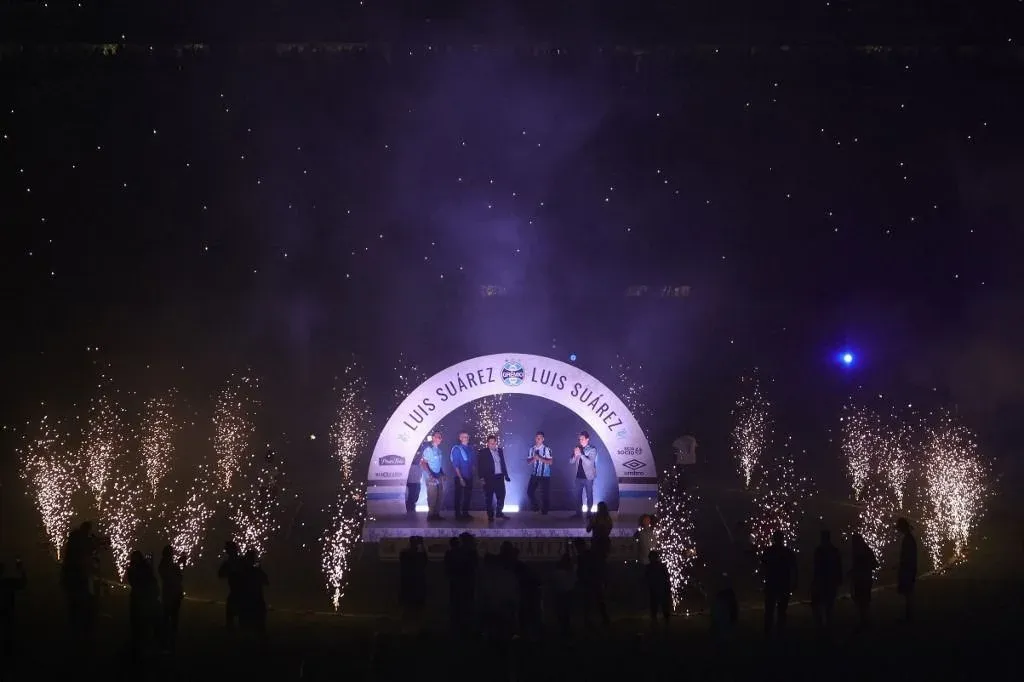 Luis Suárez tuvo una espectacular presentación en Gremio de Porto Alegre, donde los hinchas del club gaucho le dieron la bienvenida con un gran recibimiento en su estadio, el Arena Do Gremio.