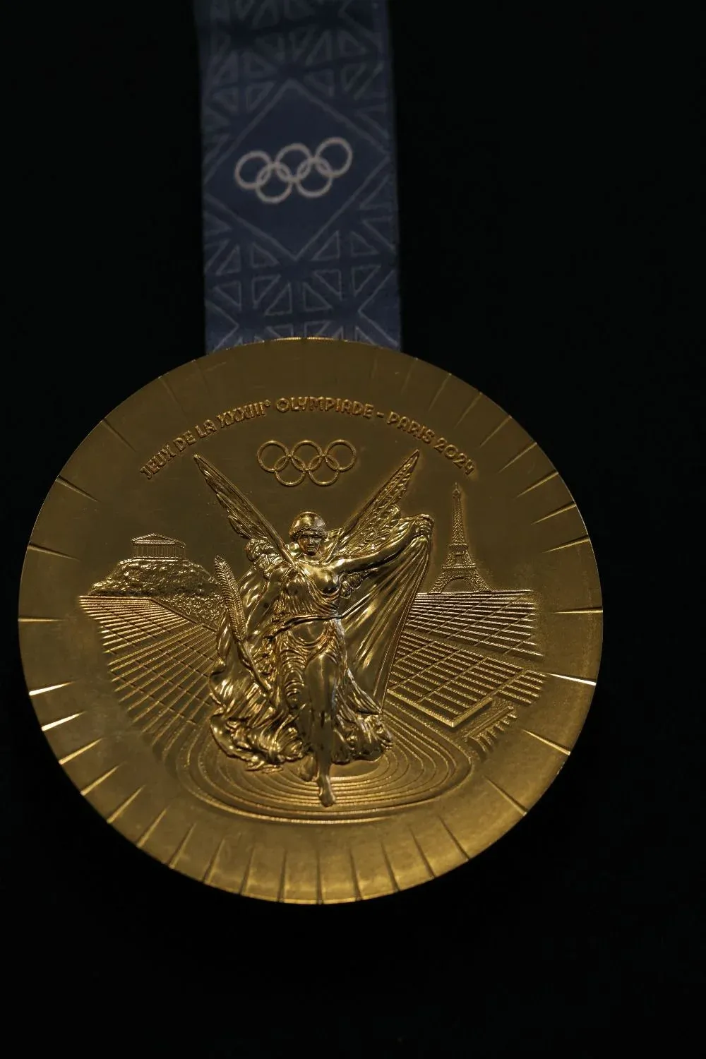 Los 18 gramos de Torre Eiffel incrustados en cada medalla fueron extraídos de piezas de la Dama de Hierro durante la renovación del monumento y guardados en secreto en cobertizos de los suburbios de París.