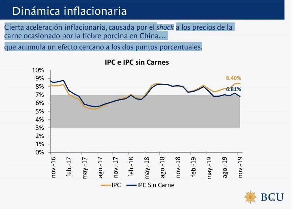 De todas formas, mencionó que sí hay cierta aceleración inflacionaria, “causada por el shock de los precios de la carne ocasionado por la fiebre porcina en China, que acumula un efecto cercano a los dos puntos porcentuales”.