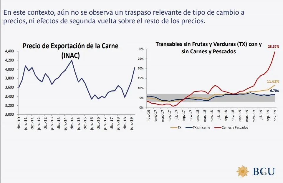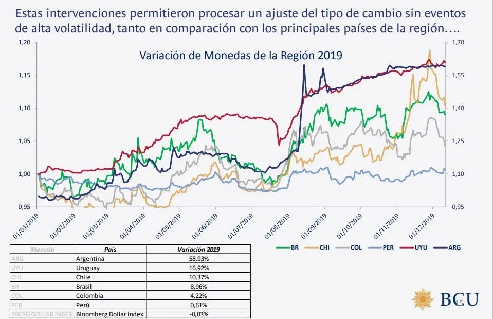 Graña destacó que a pesar de la devaluación de la moneda uruguaya frente al dólar en lo que va de 2019 (un 17%), “aún no se observa un traspaso relevante de tipo de cambio a los precios, ni efectos de segunda vuelta sobre el resto de los precios”.