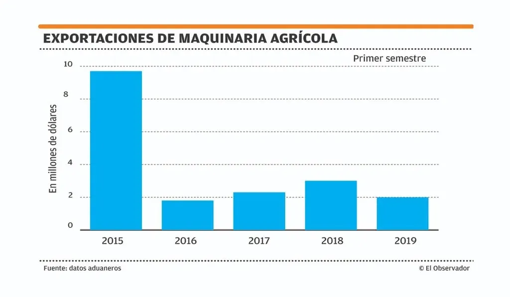 Luego de un pico en 2015, las ventas al exterior de maquinaria agrícola uruguaya cayeron para permanecer estables en esos valores más bajos. Sin embargo, las empresas del sector avizoran una mejora de la actividad. Las exportaciones del primer semestre todavía no muestran números favorables en la comparación interanual, pero la reciente reglamentación de beneficios tributarios hace que las expectativas sean positivas en el mediano plazo.