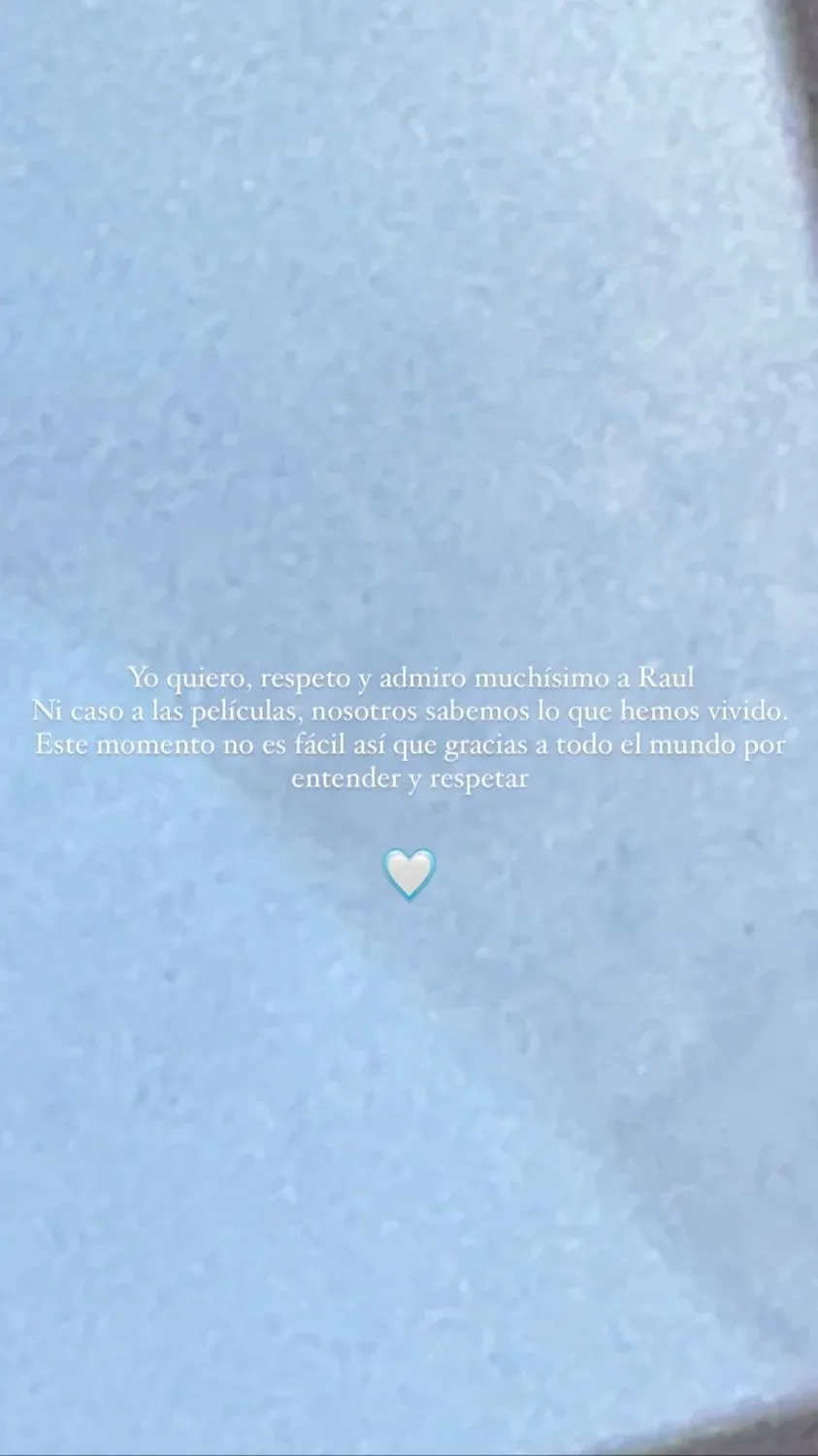 "Yo quiero, respeto y admiro muchísimo a Raúl. Ni caso a las películas, nosotros sabemos lo que hemos vivido. Este momento no es fácil así que gracias a todo el mundo por entender y respetar", escribió la intérprete de Hentai.
