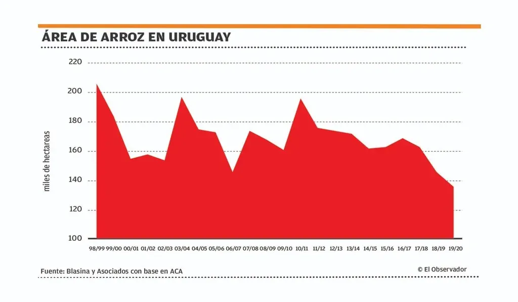 Las reiteradas malas campañas de arroz, con base en los resultados económicos de las empresas, han provocado también un achique constante durante los últimos años del área de siembra, que en la actual campaña es la más chica de los últimos 25 años.