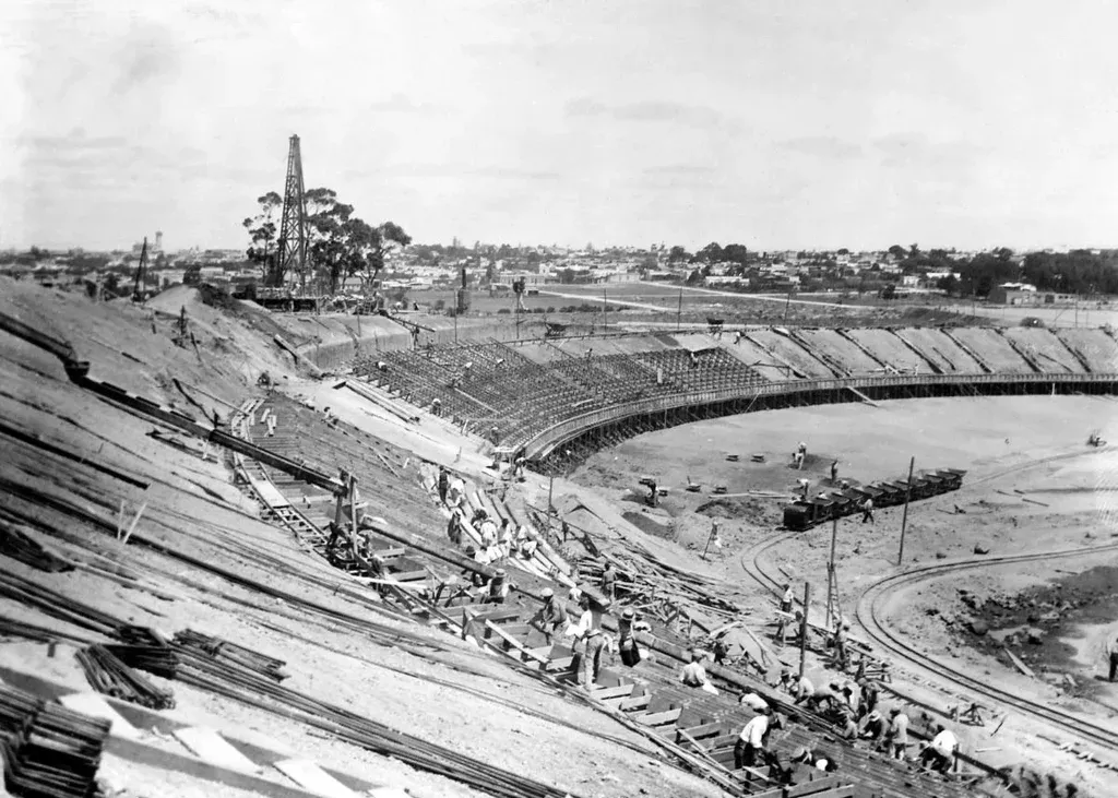 El estadio tuvo peripecias curiosas incluso antes de colocar los primeros cimientos. El libro convoca el testimonio de Juan Antonio Scasso – arquitecto uruguayo creador del proyecto– quien consideraba la labor de construcción del estadio como una “torre de Babel”. Y es que, los obreros que trabajaron en la obra, eran yugoslavos, griegos y europeos que en su enorme mayoría no hablaban español. Entonces, las directivas de cómo proceder por momentos se tornaban caóticas y las paralizaciones eran bastante usuales. Pese a todo eso, los trabajadores lograron levantar el templo en un tiempo récord de 9 meses. Aunque los esfuerzos no fueron suficientes, porque las lluvias que atormentaron Montevideo en el medio del proceso atrasaron la construcción y el Mundial de 1930 necesitó del Gran Parque Central y el Estadio Pocitos para jugar sus primeros partidos.