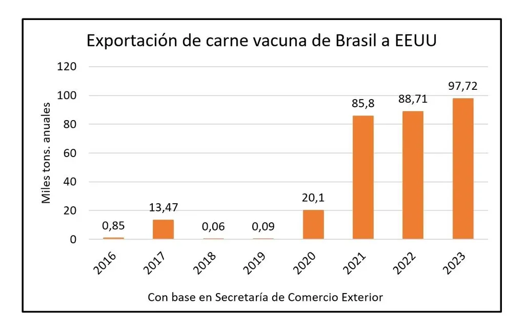 Las compras de Estados Unidos en Brasil dieron un salto en los dos primeros meses del año y crecieron 150%. En 2023 habían totalizado 97.720 toneladas con un incremento de 10% respecto a 2022.