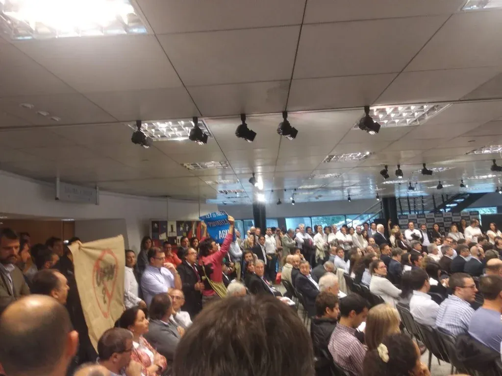 “Ustedes también son uruguayos y van a permitir esto”, dijo uno de los manifestantes. Algunas decenas de segundos después, Moncecchi retomó la palabra tras un silencio que acompañó todo el auditorio colmado, con mayoría de presencia de empresarios uruguayos.