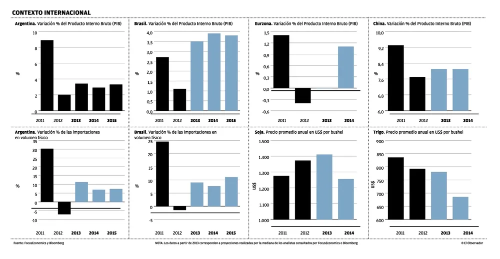 Pero lo más importante para los exportadores uruguayos es que ambos países de la región dejarán atrás la caída de las importaciones registrada en 2012 y retomarán importantes tasas de aumentos, en línea con un crecimiento más acelerado y un restablecimiento de la confianza por parte de la economía brasileña.