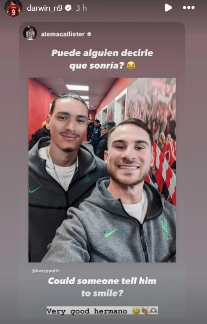 La foto que se tomó Alexis Mac Allister con Darwin Núñez, la queja del argentino y la contestación del uruguayo