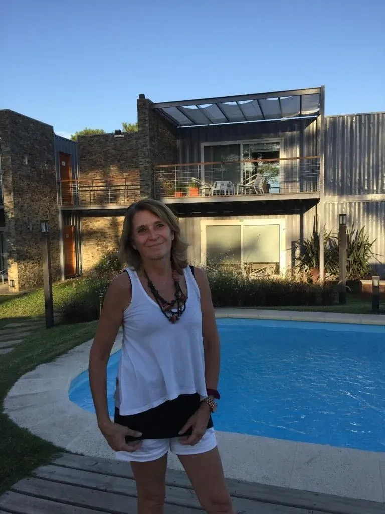 En la parada 32 de la Brava, entre la playa y el arroyo Maldonado encontró ese lugar especial para materializar su sueño y rememorar la esencia puntaesteña que tanto le gustaba. Así se embarcó en el proyecto Entre Pinos Eco Box Apart, un complejo de apartamentos ecosustentables construidos en contenedores marítimos. “Yo no me banqué ver cómo tiraban la casa de mis abuelos abajo y empecé a investigar con qué podía construir para poder llevarme mi casa por si el día de mañana venían a decirme ‘te tenés que mudar’. Ahí surgió que lo mejor era un contenedor”.