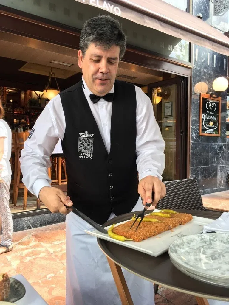 En definitiva, lo que por el Río de la Plata conocemos como milanesa, es una modificación de otros productos europeos con mucha más historia. En esa rica historia gastronómica el cachopo ocupa un lugar de honor, no sé si como un plato de alta cocina, pero si como una comida popular que es seña de identidad de toda una región. Alva me dijo: “aquí es en el único lugar del mundo donde podés comer el verdadero cachopo”. Entonces no lo dudé, pese a la advertencia en la carta, que el peso era de un kilogramo.