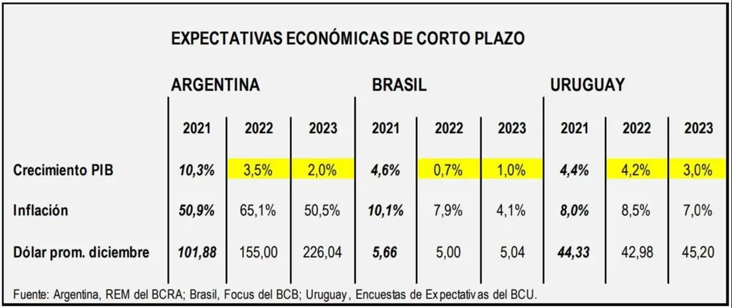 Argentina y Brasil tendrán un bajo nivel de crecimiento en 2022 y se encarecerán en términos de dólares, de acuerdo al último Monitor de Coyuntura publicado por la Universidad Católica (UCU).