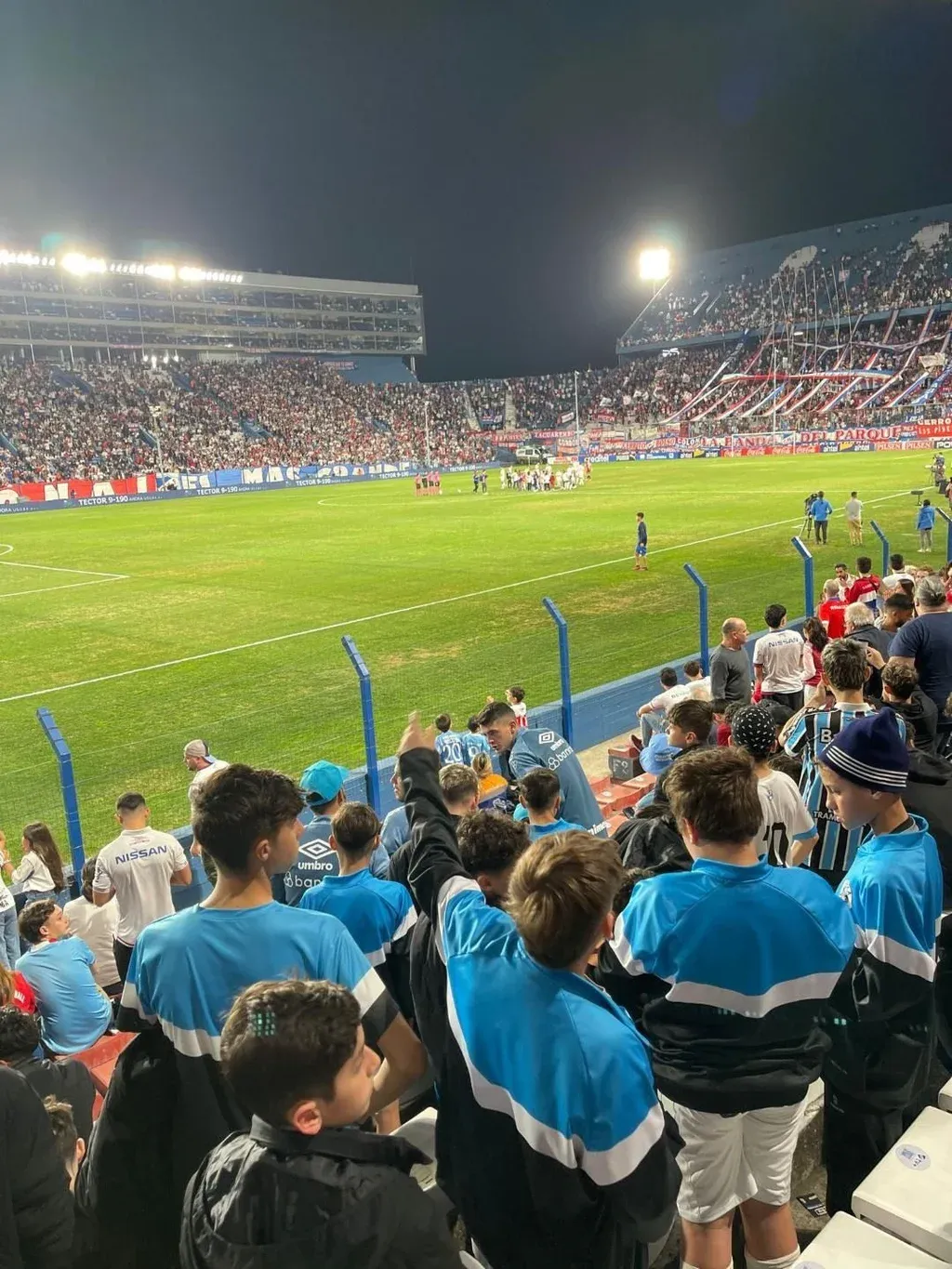 Este sábado en el Gran Parque Central no pasó desapercibido un grupo de 65 personas integrado por jugadores y entrenadores de Gremio que llegaron hasta el estadio de los tricolores para ver el partido entre Nacional y Cerro Largo, por la última fecha del Grupo B del Torneo Intermedio.
