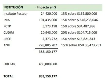 El impacto también es en el Centro Uruguayo de Imagenología Molecular (Cudim) "el importe destinado a investigación pasa de $25 millones estimado al inicio a $4 millones".