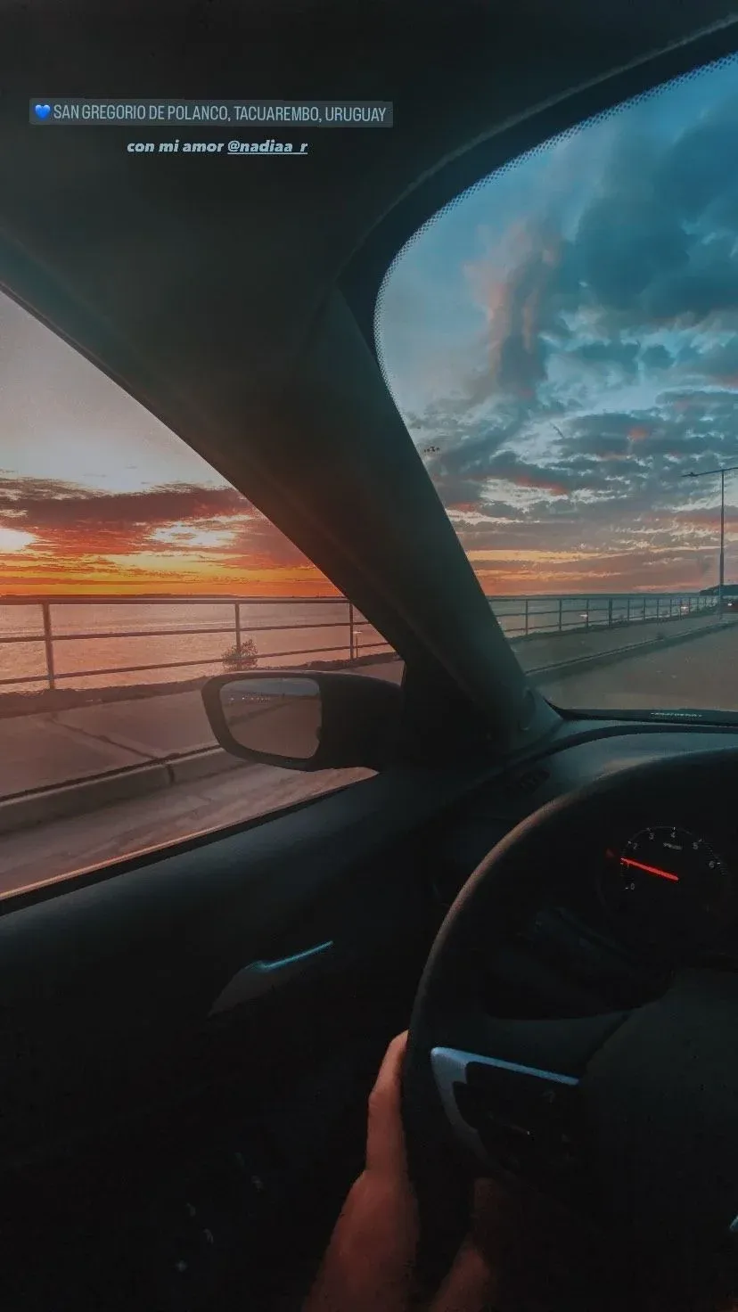 El zaguero juvenil Nahuel Herrera posteó una historia de Instagram llegando el martes a San Gregorio de Polanco con su novia Nadia Pereira, futbolista de Montevideo City Torque.