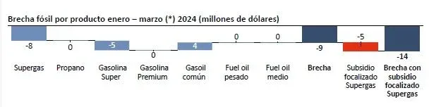 Los datos oficiales también indican que en los primeros tres meses del año la petrolera estatal resignó ingresos por US$ 9 millones, como resultado que las tarifas fijadas por el Poder Ejecutivo estuvieron por debajo de la paridad de importación. A eso se suman otros US$ 5 millones que corresponden al subsidio focalizado del supergás.