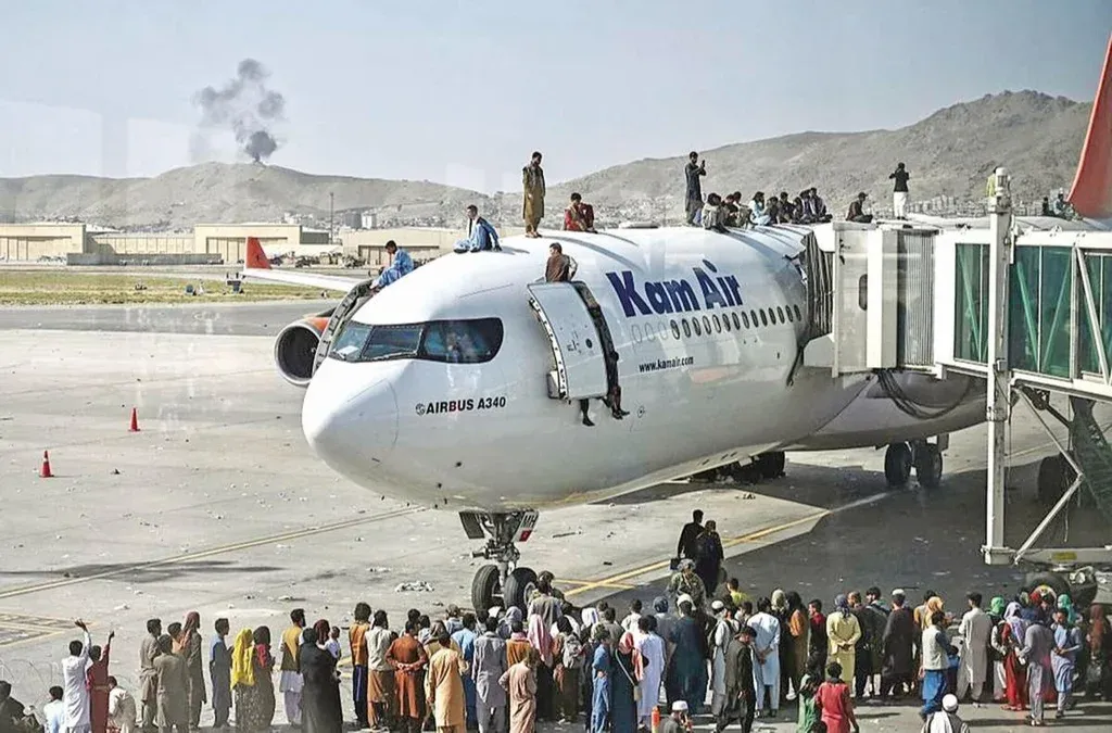 Multitud de afganos intentan huir en el aeropuerto de Kabul.